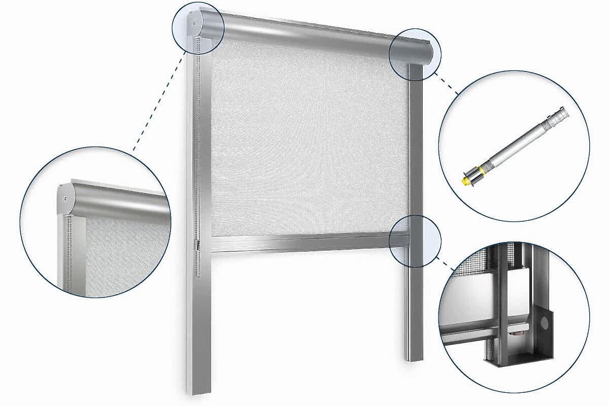 Любое изделие состоит из рамы и москитной пластиковой сетки, закрепленные с помощью соединяющих элементов, а также набора специальных Pin-Up Для традиционных решений применяются штоки и z-крепления; рулонные сетки удерживаются коробом с направляющими.